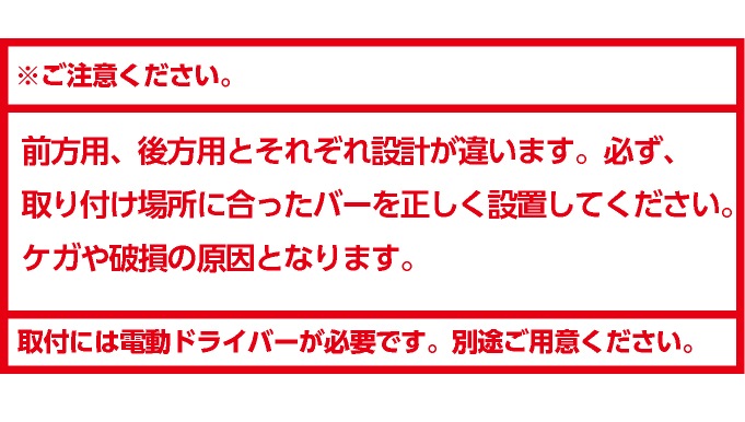 必ず、取り付け場所に合ったバーを設置してください。