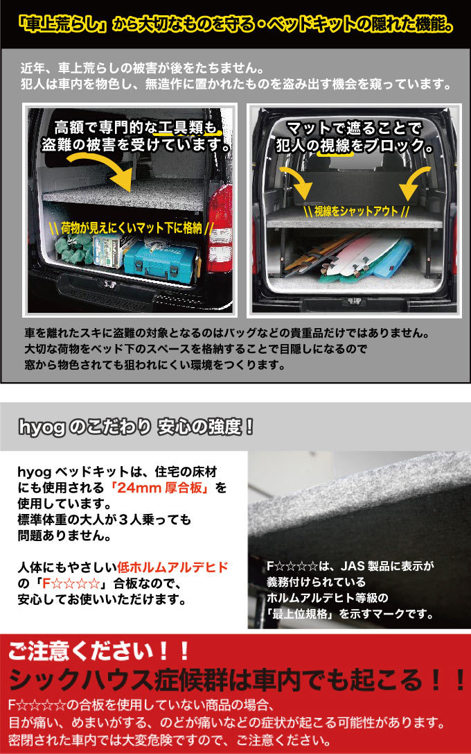 急発進・急ブレーキの際に、ベッドマットがずれる可能性がございます。安全運転にて走行してください。