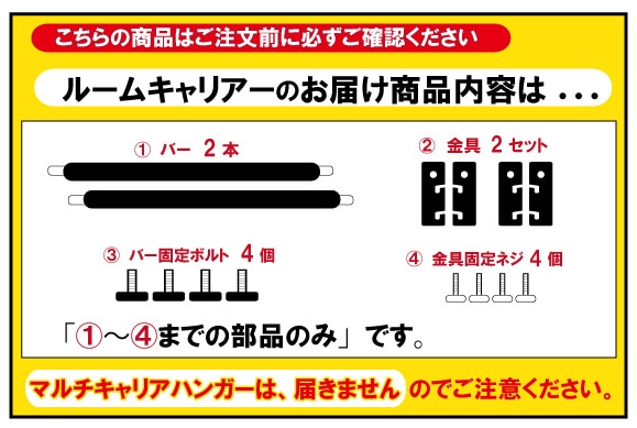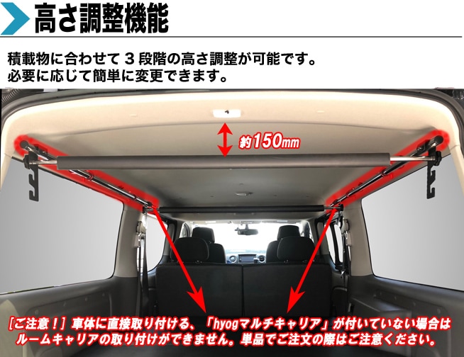 hyogルームキャリアの装着には、hyogマルチキャリアハンガーが必要です。