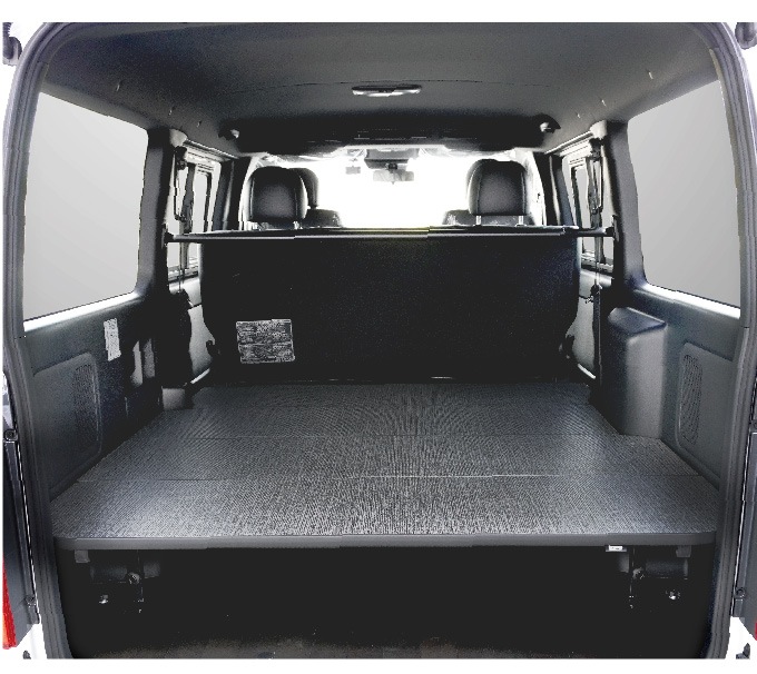 ※写真の床材(硬質CFフロアパネル)は別売りですが、床材なしでもベッドキットの設置可能。