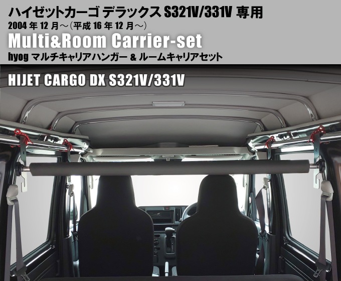 必ずお読みください 商品名 ハイゼットカーゴ デラックス S321V/331V専用 マルチキャリアハンガー&ルームキャリアセット メーカー hyog ヒョーグ(自社工場にて生産) 商品内容