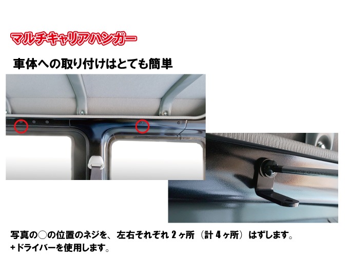 ■初期不良以外の返品は承っておりませんので、予めご了承頂ますようお願いいたします。ハイゼットカーゴ デラックス S321V/331V専用 マルチキャリアハンガー&ルームキャリアセット hjt-carierset