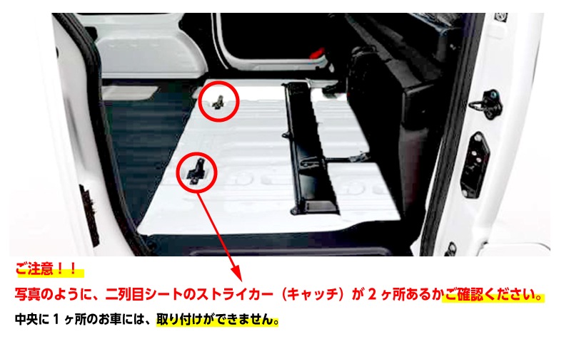 セカンドシートストライカー(キャッチ部分)が2ヶ所の車のみ取付OK
