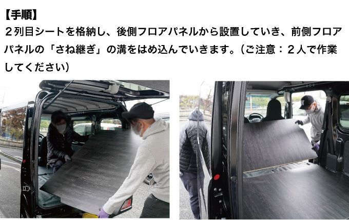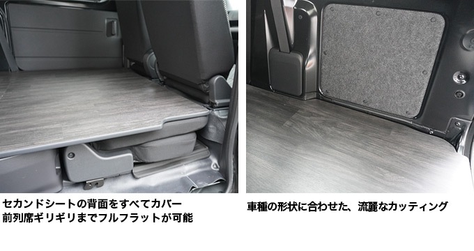 セカンドシートを格納してフロアパネルをはめ込みで敷いていくので、段差が解消され美しい床面に仕上げることができます。