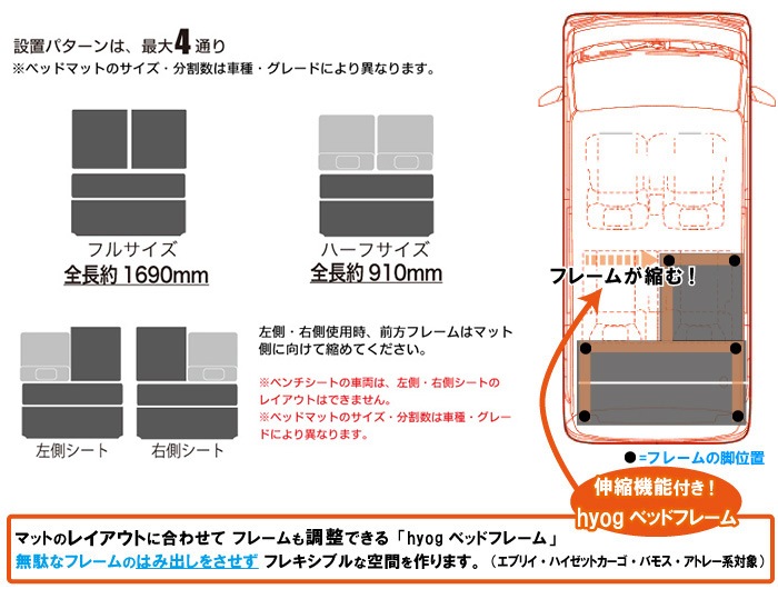 急発進・急ブレーキの際に、ベッドマットがずれる可能性がございます。安全運転にて走行してください。