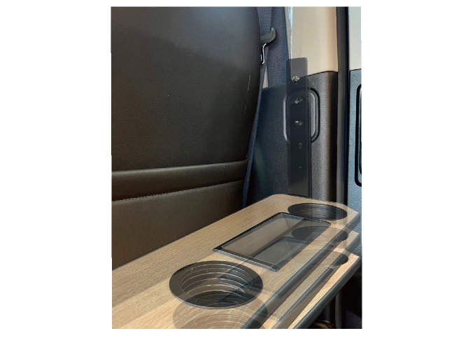テーブルを使用中でも程良いリクライニングで運転を妨げない設計。