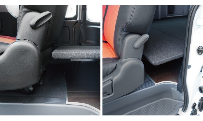 ベッド面(積載面積)を最大限に確保しながら、セカンドシートはお使いいただけます。 乗車人数も積載も両立。
