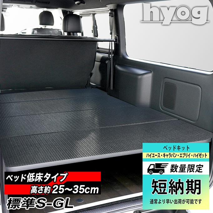 [短納期商品] ハイエース ベッドキット ロータイプ 200系 標準S-GL用 硬質マットタイプ【防滑シードブラック】(8型)対応