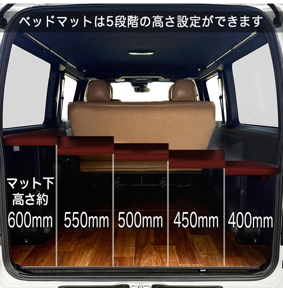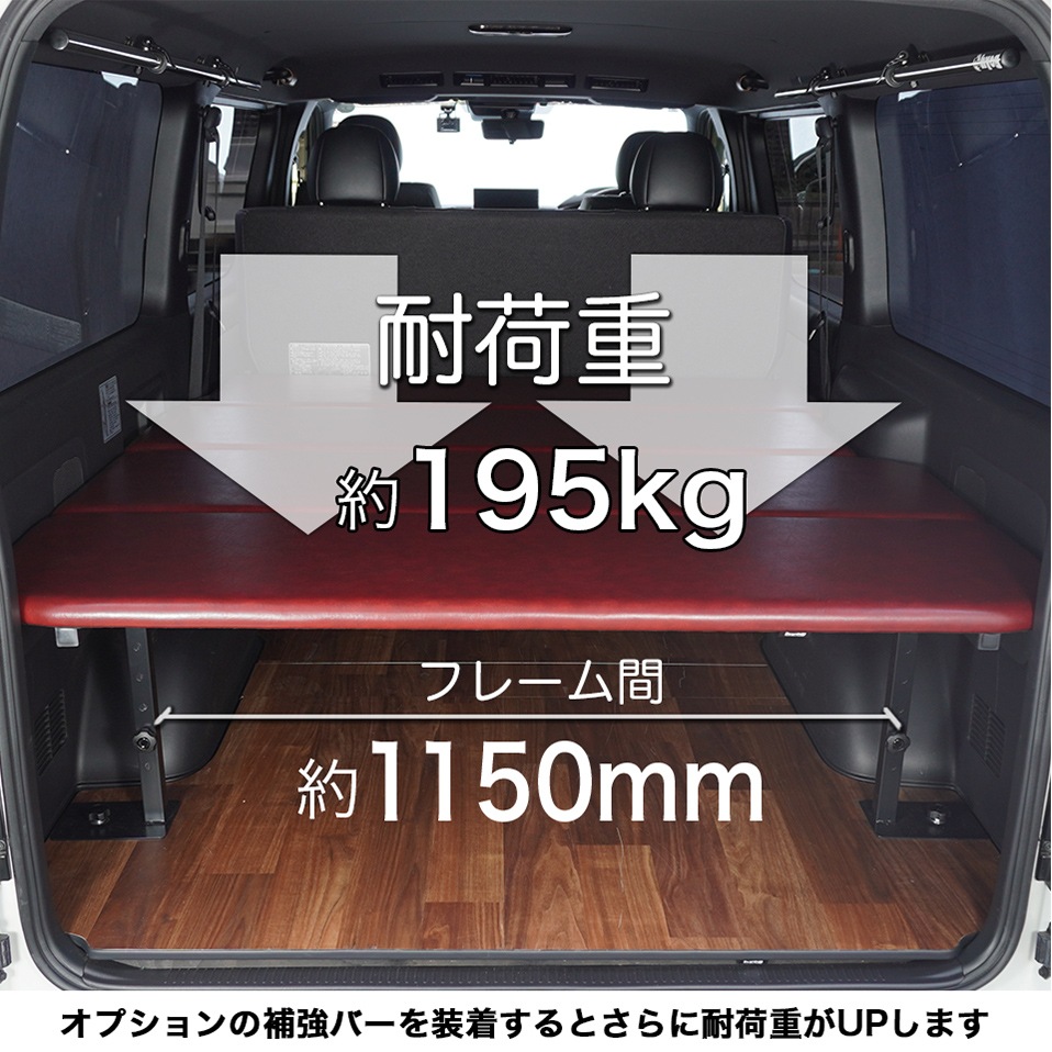 標準S-GL用【クラシックレッド】レザータイプ ベッドキット ハイエース200系 8型対応 荷室棚 高さ60cmまで5段階調節 トヨタ HIACE