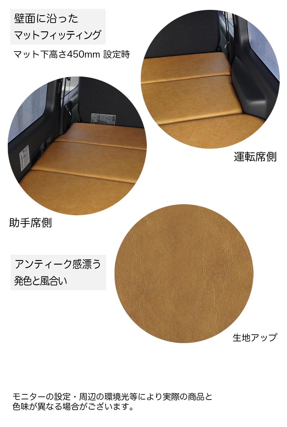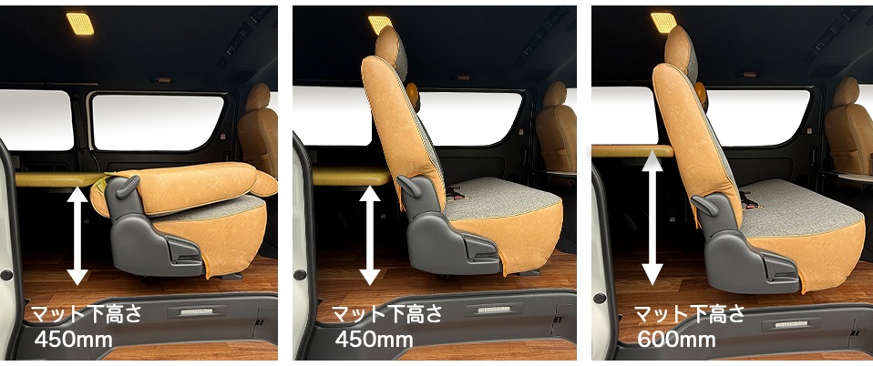 標準S-GL用【サンマスタード】レザータイプ ベッドキット ハイエース200系 8型対応 荷室棚 高さ60cmまで5段階調節 トヨタ HIACE